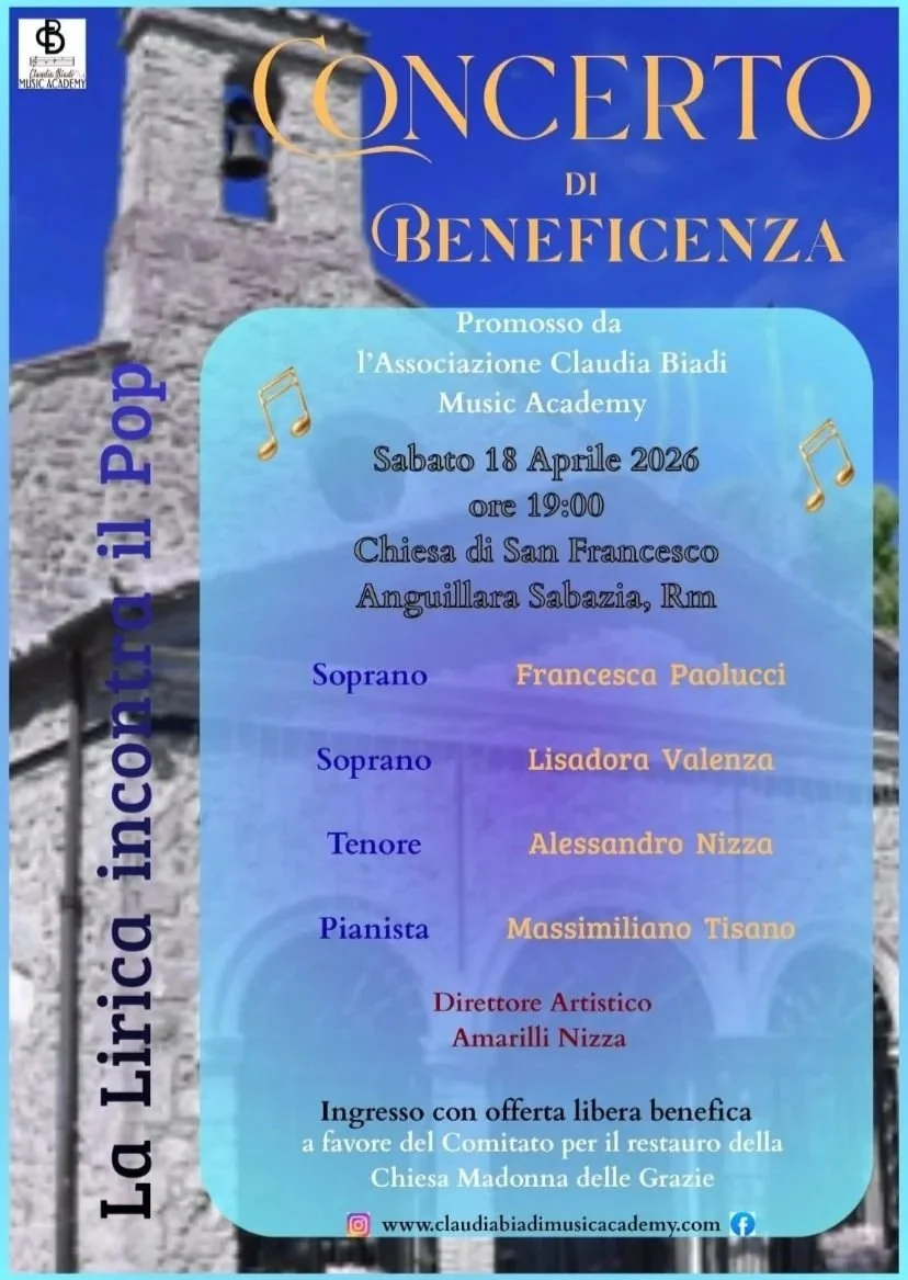 Lo scopo dell’Associazione Claudia Biadi Music Academy è quello di divulgare l’arte, dare luce a nuovi talenti musicali e integrare le diverse discipline artistiche, organizzando concerti e Masterclasses per giovani artisti.
